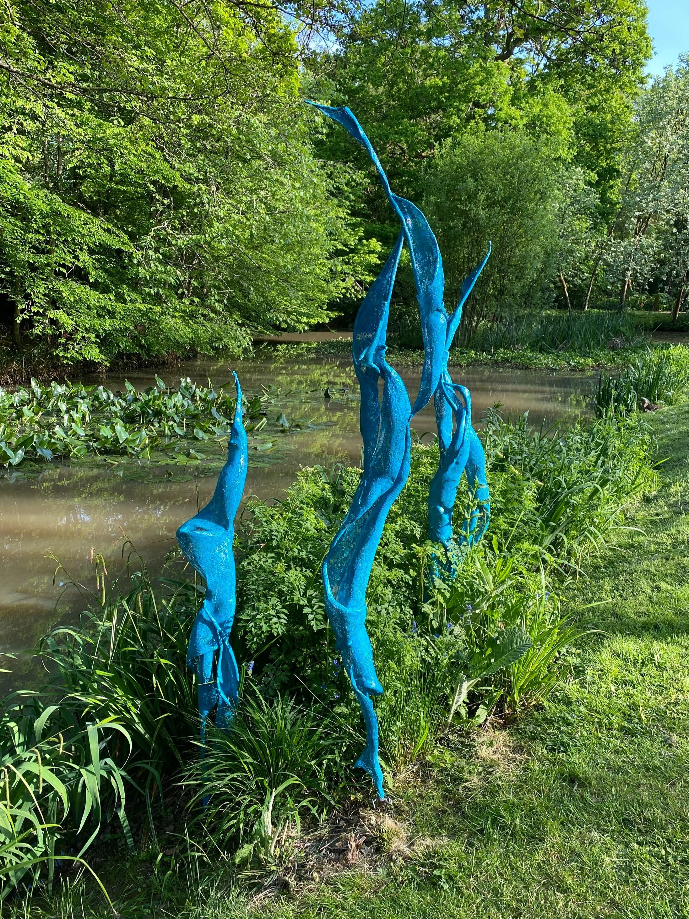 The fragile and ethereal quality of her sculpture lends itself perfectly for sitting in both domestic and public gardens, with a broad range of colour finishes allow the work to blend or contrast with the surroundings as desired.