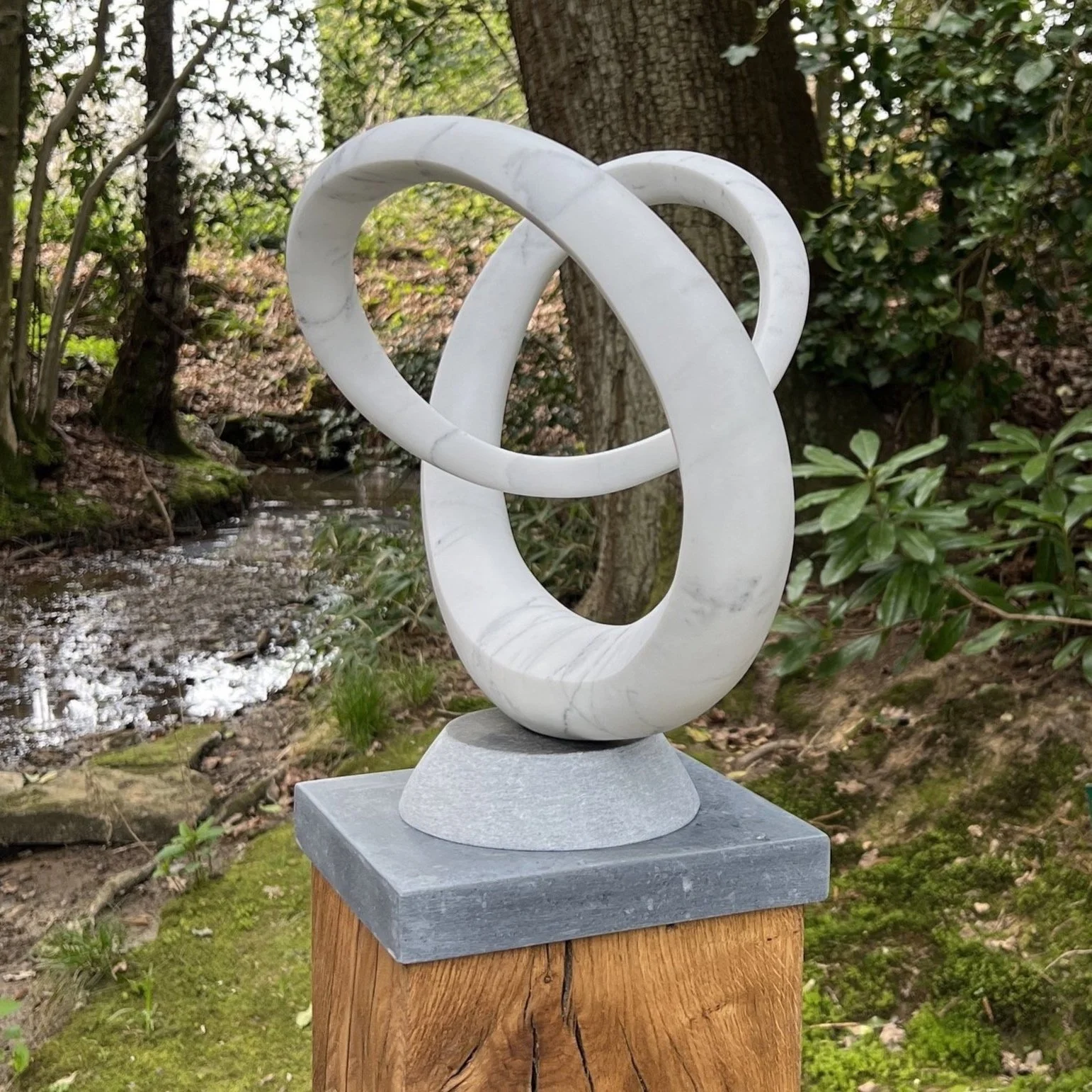 Carrara marble, slate, oak plinth