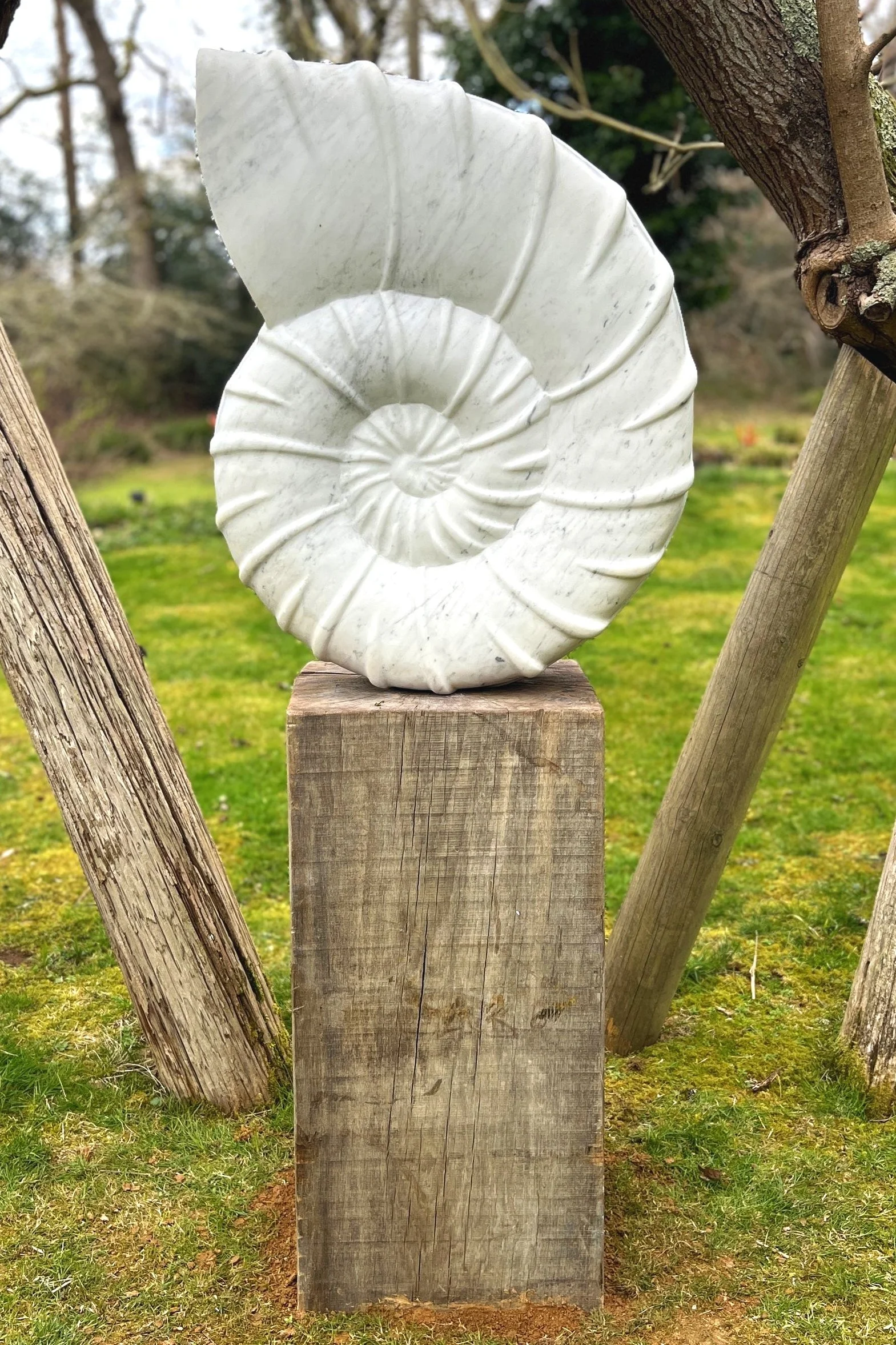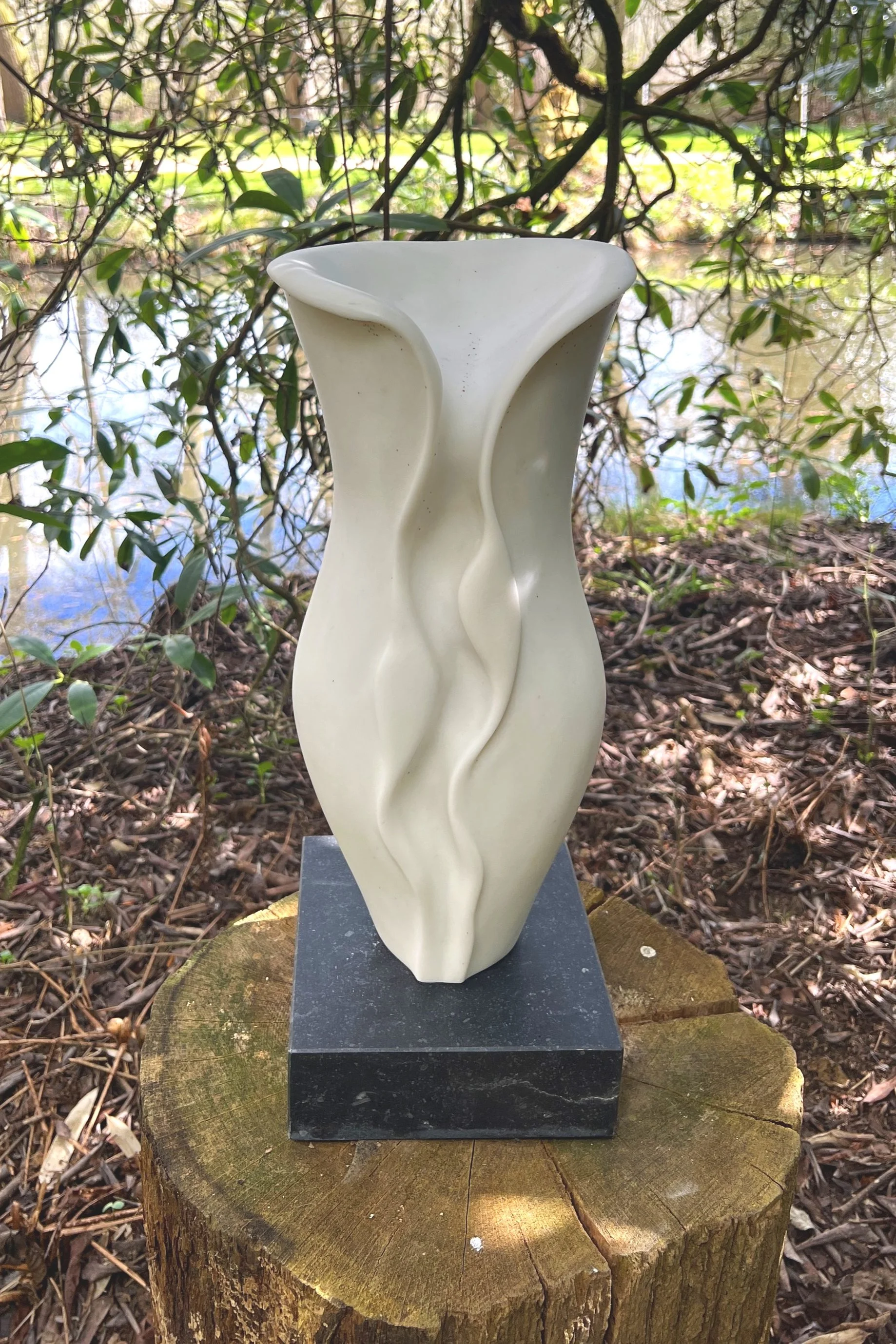 Located in a stunningly beautiful valley in the midlands, Lucy Unwin’s studio can be found in an old stone farm building overlooking the fields. From this setting, Unwin carves organic and figurative forms in a vast range of stone. Never one to shy away from a challenge, Unwin often picks unusual - and tricky to carve - stone to create her striking pieces. ‘Kore’ which was displayed by Black & White Cottage in 2016, is carved from a mysterious Italian marble that was seemingly discarded in the corner of an Italian stone yard for over 60 years. Unsure of what she might find as she carved deeper, Unwin brought the marble back to the UK and was rewarded with a vivid network of blues and purples running through the unusual stone.
