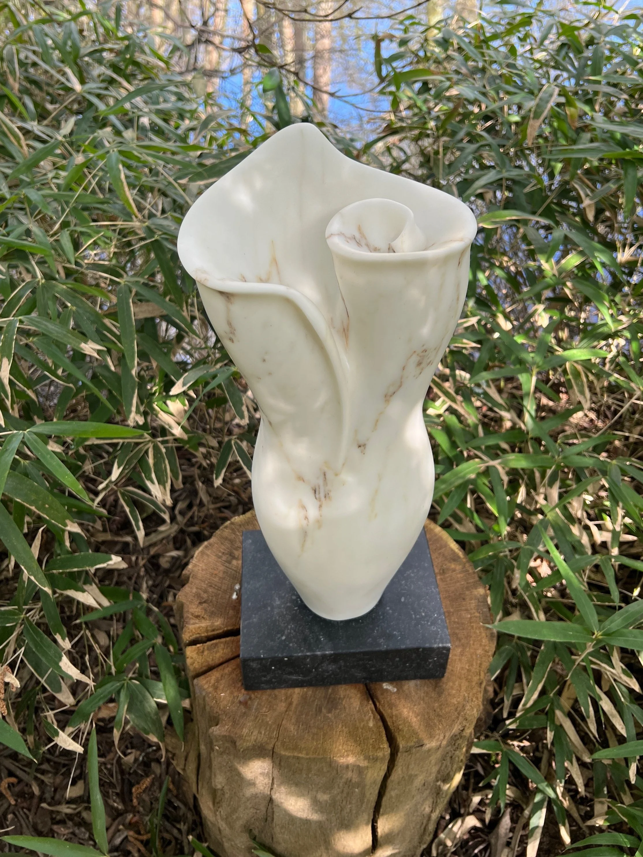 “The inspiration for my work derives from natural forms, be it organic shapes found in nature or the human figure. When working with stone I use the natural shape of the material for guidance before releasing the form within. The physical process of working, which is often very demanding is important to me, as by combining physical and mental energy I am able to create the desired outcome.”
