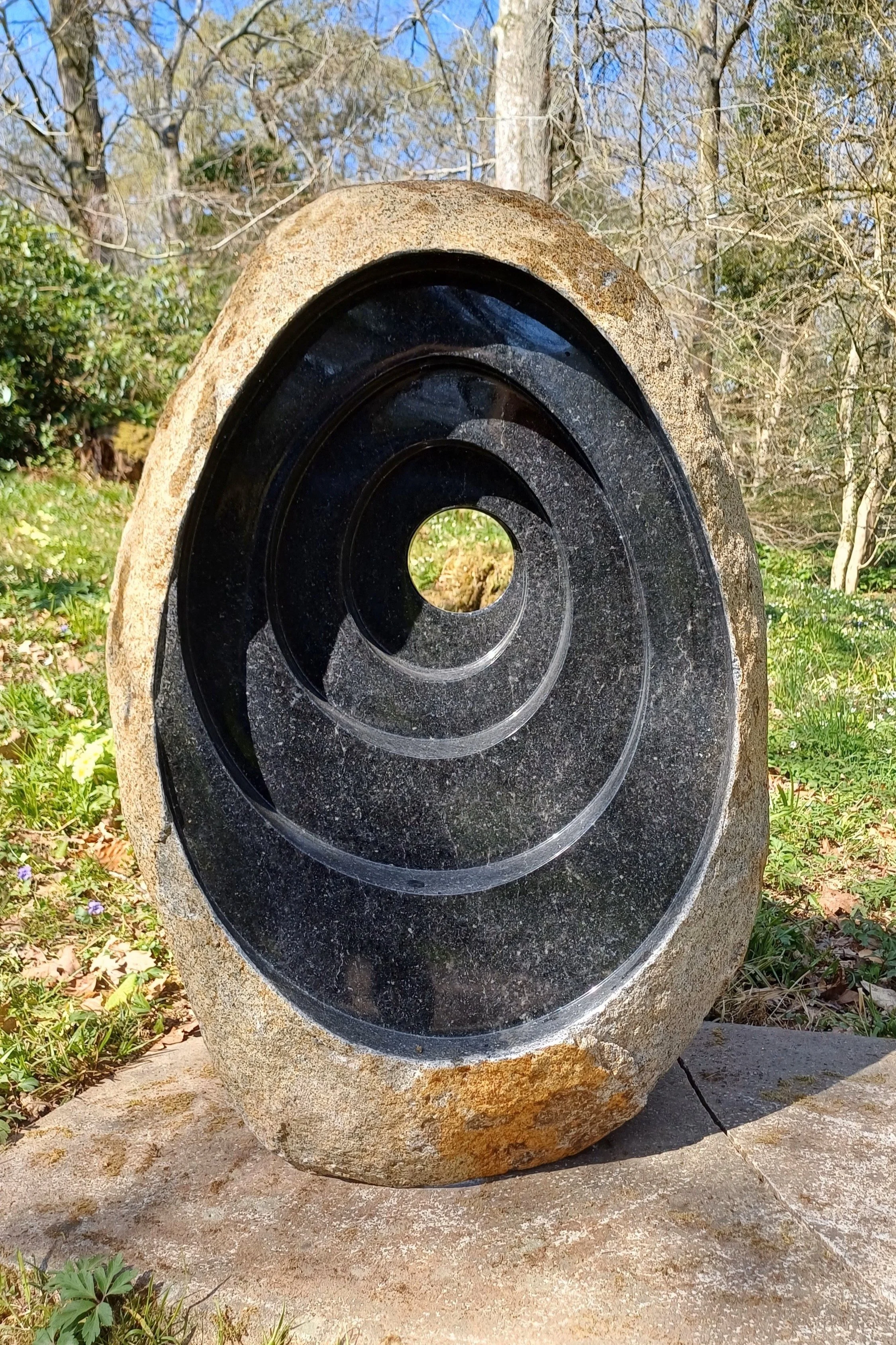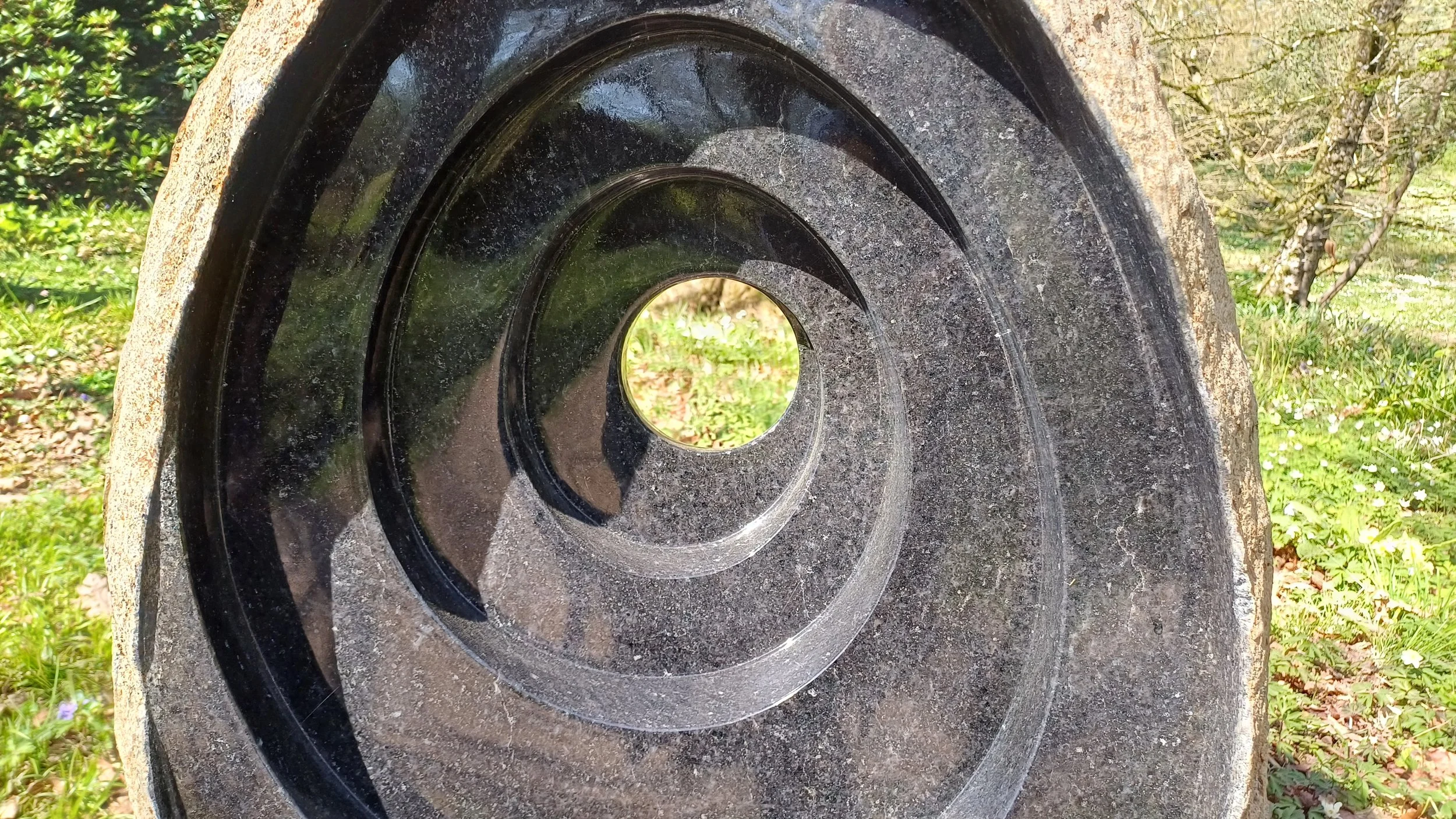 Standing stones are intrinsically symbolic and feature in folklore as having a mysterious quality. Matt's quest is to prise the mystery apart, to go beyond the familiar exterior and dissect the stones to bring them to life. It is the discovery of what is hidden within the form of the stone that inspires his creations. The stone responds to a highly polished finish, bringing out its dark rich colours, which is in contrast to the external surface shaped by nature. This juxtaposition enables his pieces to draw the observer through the centre of the sculpture, revealing the inner beauty in harmony with the outer ruggedness.