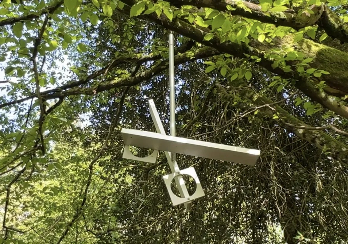 The kinetic sculptures of German sculptor Michael Hischer are designed for the outdoor space. Created from stainless steel and aluminium, the moving elements are attached centrally to the axles by groove ball bearings. They are so accurately weighted that even the slightest breeze will set them into motion, where they will gently rock, twist and spin for extended time.